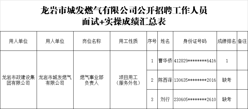 • Time:2025-05-12龍巖市政建設(shè)集團(tuán)有限公司公開招聘工作人員面試+實(shí)操成績(jī)排名的公示