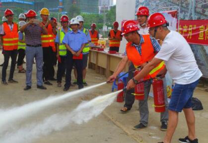 6月16日是“全國(guó)安全生產(chǎn)宣傳咨詢?nèi)铡?。?dāng)日,龍巖城發(fā)集團(tuán)與市城投公司組織人員分別前往中心城區(qū)華蓮西路一期、火車站站前高架橋、龍巖大橋高架橋、龍巖大道四期下穿工業(yè)路通道等四個(gè)項(xiàng)目工地,開展安全生產(chǎn)宣傳活動(dòng)。圖為工作人員現(xiàn)場(chǎng)指導(dǎo)工人使用滅火器。