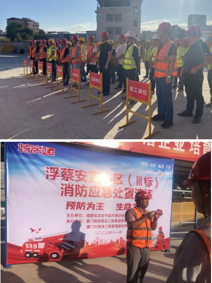 11月9日是第32個(gè)全國消防日,為全面普及消防安全知識(shí),進(jìn)一步提高在建項(xiàng)目管理人員及現(xiàn)場(chǎng)工人的消防安全識(shí)自防自救的處置能力,預(yù)防和減少火災(zāi)事故的發(fā)生,當(dāng)天,市政集團(tuán)以“11·9”消防宣傳日為契機(jī),深入浮蔡安置小區(qū)Ⅲ標(biāo)項(xiàng)目開展11·9”消防安全宣傳日活動(dòng),圍繞主題開展了消防應(yīng)急處置演練活動(dòng),公司副總經(jīng)理修海金、質(zhì)安部及施工、監(jiān)理單位共計(jì)五十余人參加活動(dòng)。