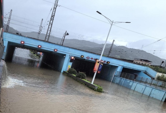 經(jīng)過現(xiàn)場察看,由于短時間降雨量太大,龍津河水位暴漲高于通道出口頂標(biāo)高,河水倒灌至下穿通道導(dǎo)致交通中斷,下穿通道水泵房三臺水泵全部啟動抽水也無法滿足排水要求。公司防汛小組到達現(xiàn)場后,連夜組織人員拉好警戒線,設(shè)置警示標(biāo)志,防止車輛進入下穿通道,并調(diào)度4輛應(yīng)急車輛及時排水并清洗路面;同時,提前與鐵路部門、交警部門聯(lián)系,暫時封閉該段線路。經(jīng)過6小時的不斷抽水,路面已基本暢通,搶險過程未發(fā)生任何險情和人員傷亡。