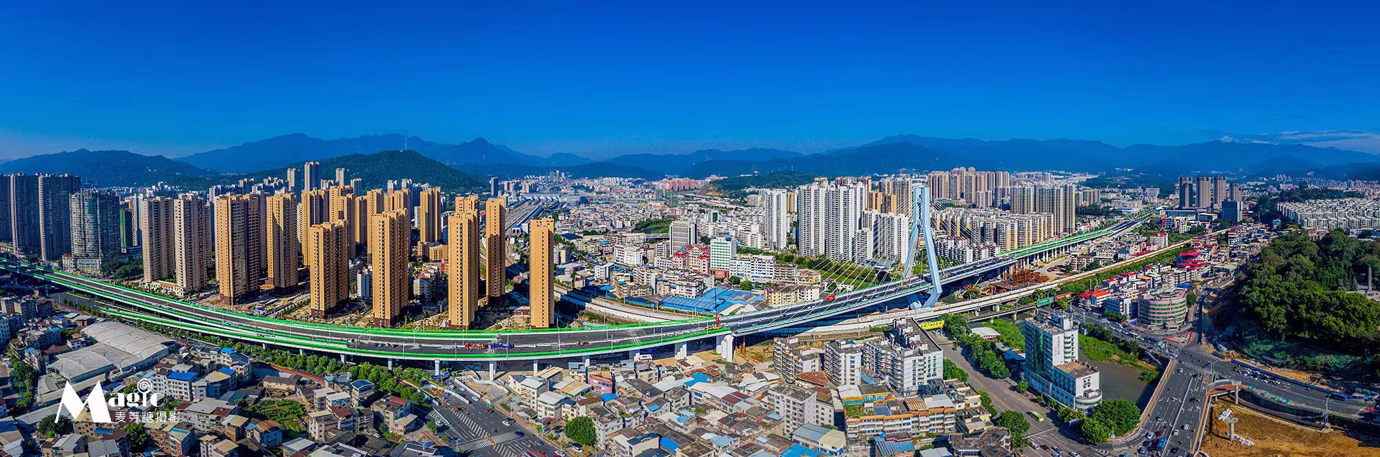 龍巖大道高架橋項(xiàng)目為省、市重點(diǎn)建設(shè)項(xiàng)目,是龍巖中心城市連接南北、溝通新老城區(qū)的重要樞紐,項(xiàng)目位于龍巖市南北交通中心軸和景觀軸線龍巖大道上,全長(zhǎng)3395m,包含橋梁和地面道路兩大部分,其中橋梁工程總長(zhǎng)2329m,橋?qū)?6m,包含一座190+150m獨(dú)塔斜拉索鋼箱梁主橋(主橋?qū)?6.3m),全線設(shè)計(jì)為雙向六車(chē)道,設(shè)計(jì)車(chē)速60km/h,在西陂路及人民路處各設(shè)置上下匝道,跨越雙洋路、羅龍東路、人民路、登高西路、西陂路城市主干道,項(xiàng)目總投資約24億元。
