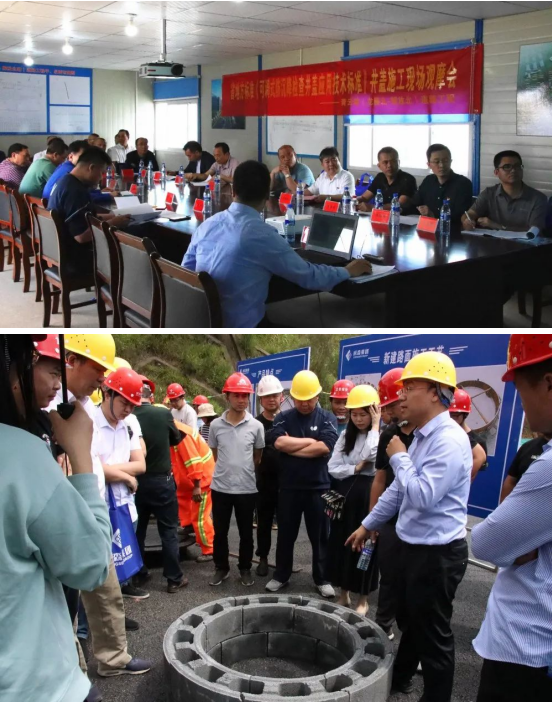 觀摩會采用理論討論和現(xiàn)場觀摩相結合的方式,現(xiàn)場展示了新建道路防沉降井蓋安裝的全過程和舊路面井蓋修復工藝。