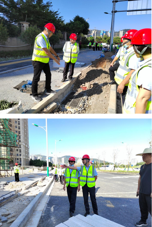 在檢查現(xiàn)場,檢查組一行認(rèn)真查看道路施工安全隱患,并要求施工單位立即整改,同時(shí),市政集團(tuán)黨支部書記、董事長徐旺興還強(qiáng)調(diào),一要嚴(yán)把質(zhì)量關(guān),強(qiáng)化質(zhì)量監(jiān)督,抓質(zhì)量的同時(shí)還要重安全,堅(jiān)持“標(biāo)準(zhǔn)化、規(guī)范化、程序化”作業(yè),施工過程嚴(yán)格按照操作規(guī)程施工,嚴(yán)禁違章施工,確保安全生產(chǎn);二要排除安全隱患,對檢查中發(fā)現(xiàn)的安全問題要及時(shí)與項(xiàng)目負(fù)責(zé)人對接溝通,并正式通車前逐項(xiàng)整改,不留死角;三要強(qiáng)化全局意識(shí),完善工作機(jī)制,施工和監(jiān)理單位要緊密協(xié)調(diào)配合,提高工作效率,嚴(yán)控時(shí)間節(jié)點(diǎn),全力以赴打好項(xiàng)目攻堅(jiān)戰(zhàn),確保如期通車,為廣大群眾提供“優(yōu)質(zhì)、安全、舒適”的通行環(huán)境。